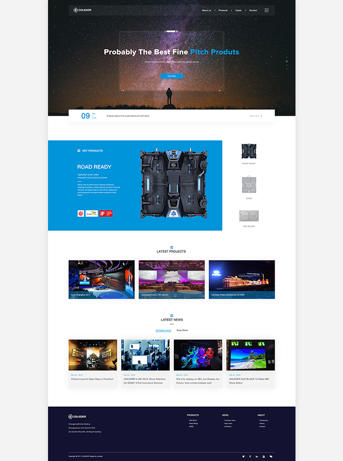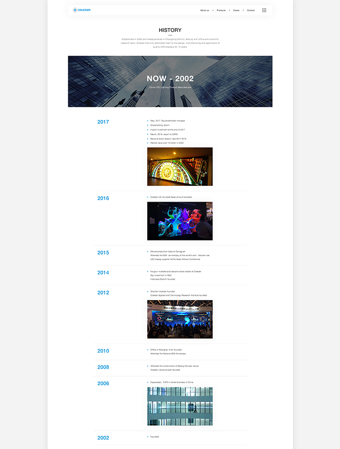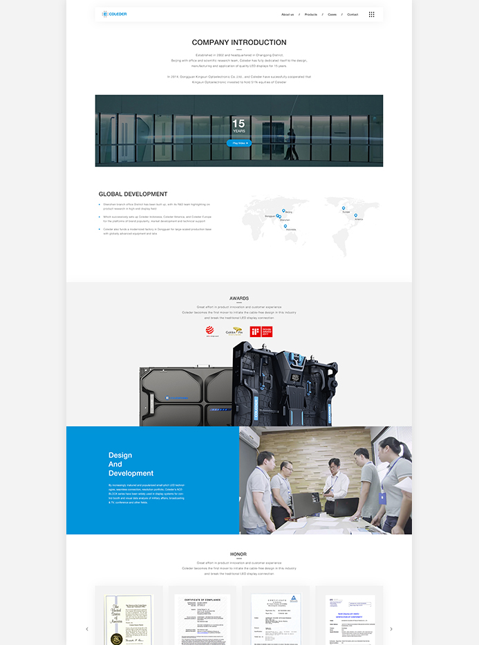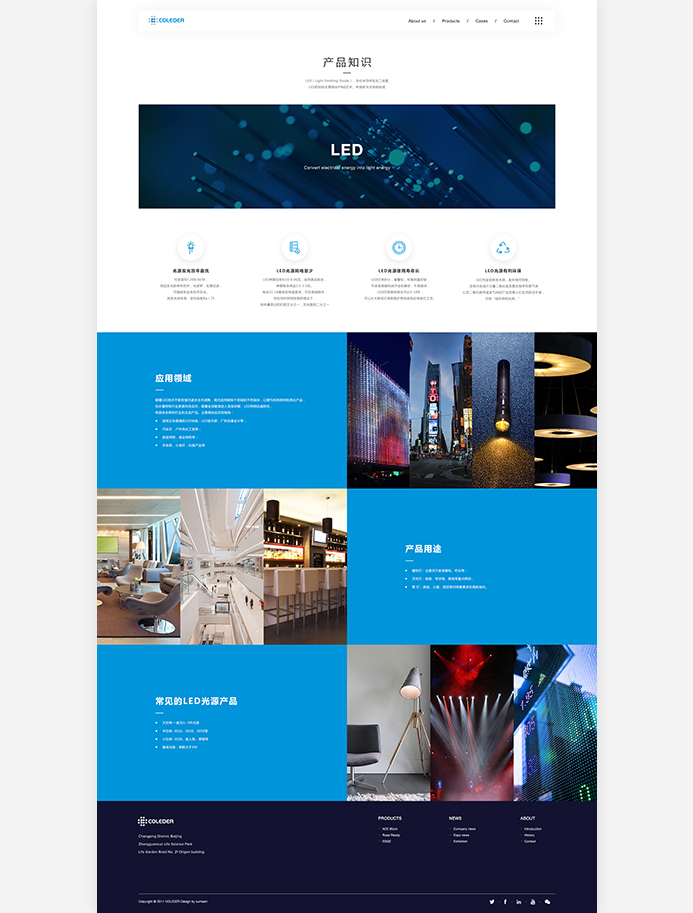| 服 務 | 科技產品,高端制造,光電LED,國內,國際,集團公司,網站設計,前端交互,Wordpress應用,系統維護 |