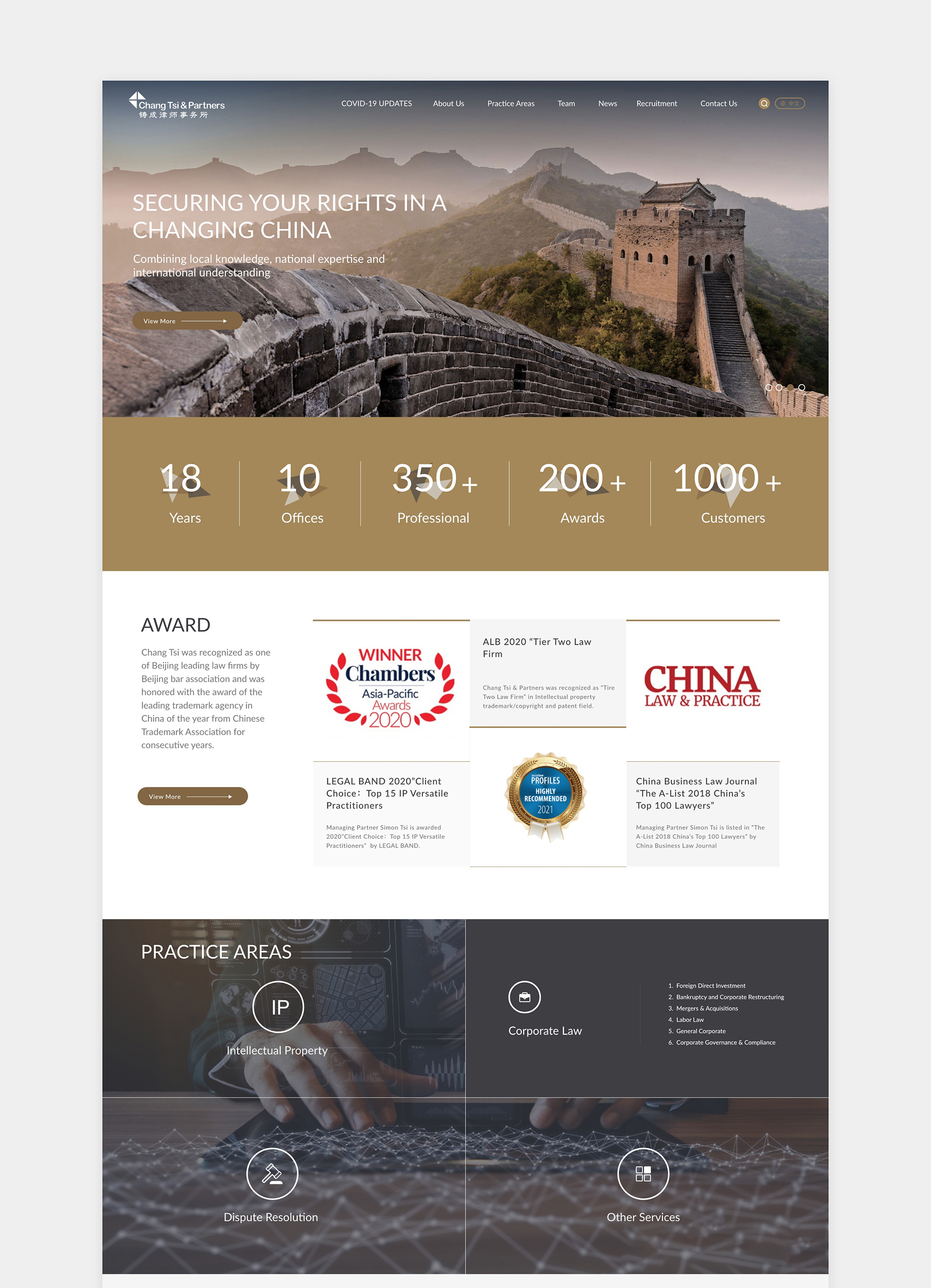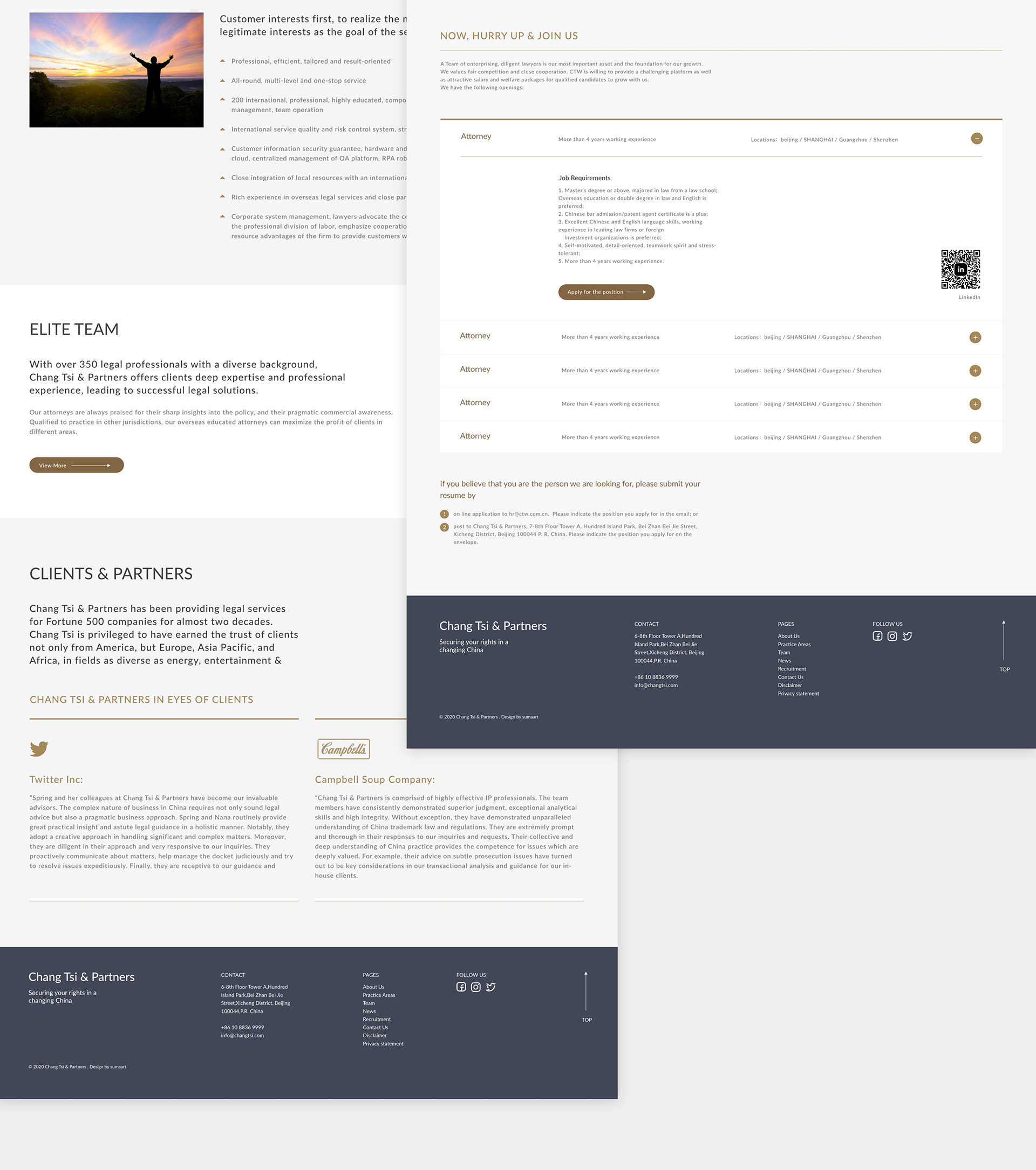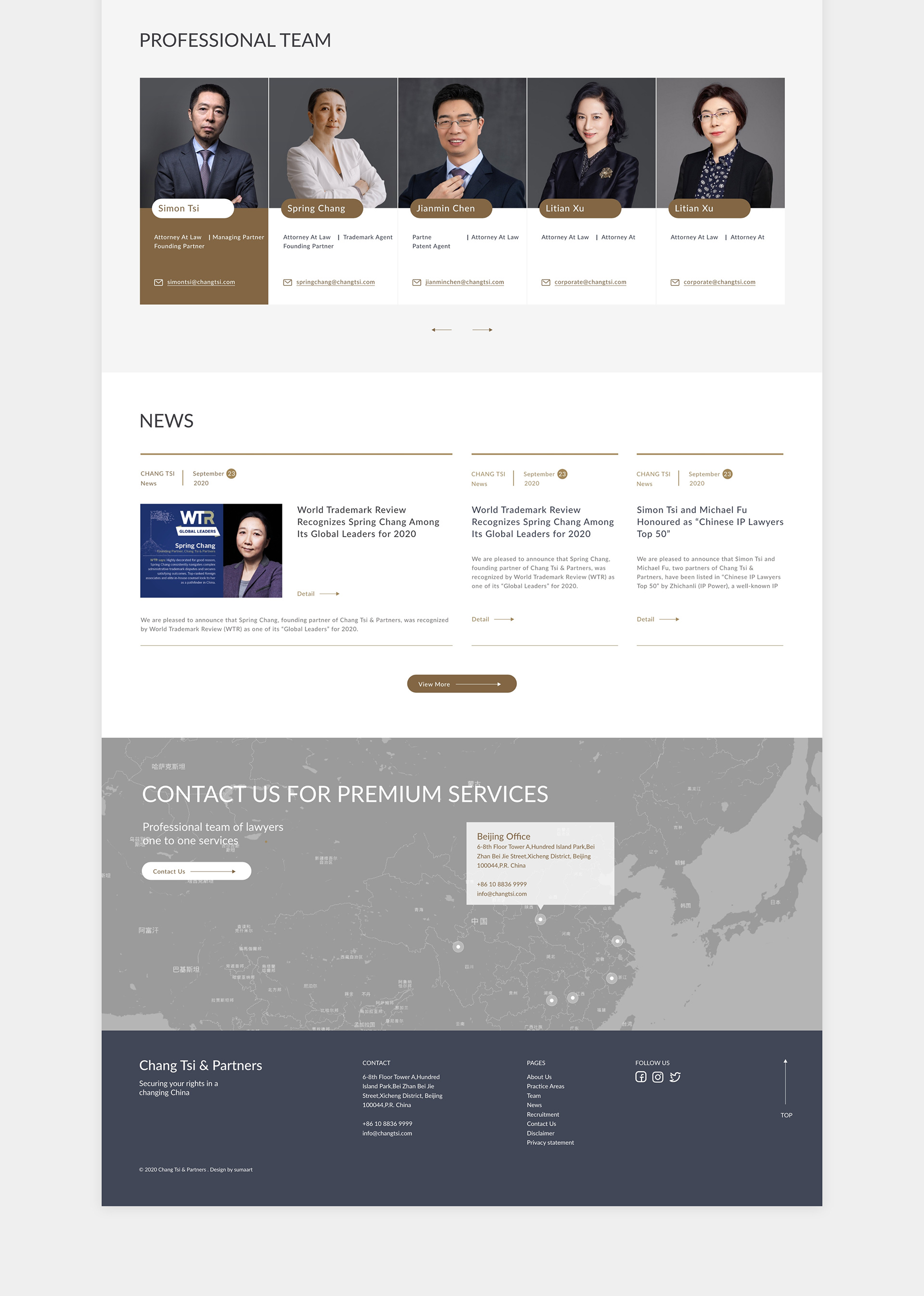 | 服 務 | 法律律所,國內,消費產品,集團公司,網站設計,前端交互,系統開發,系統維護 |