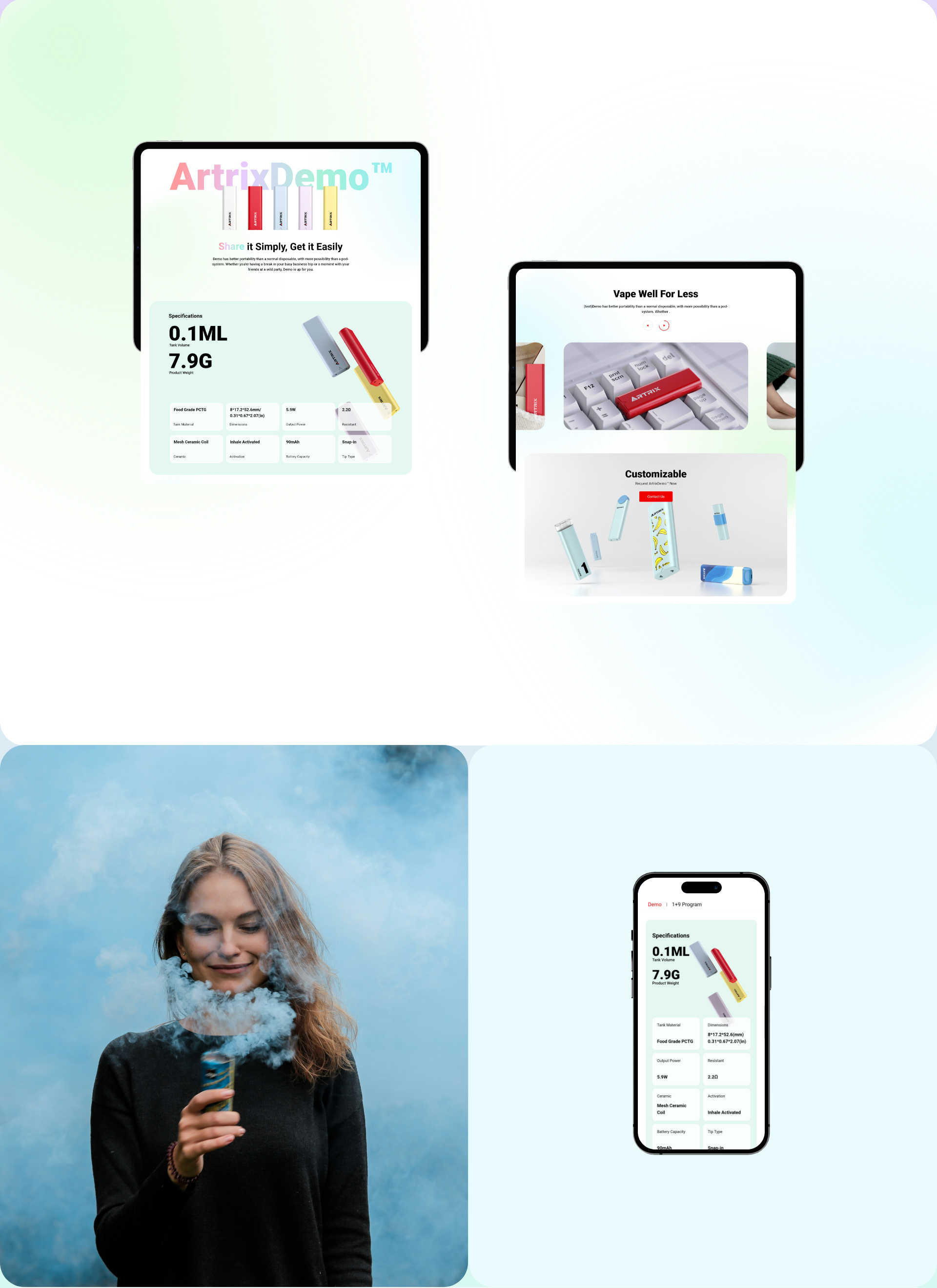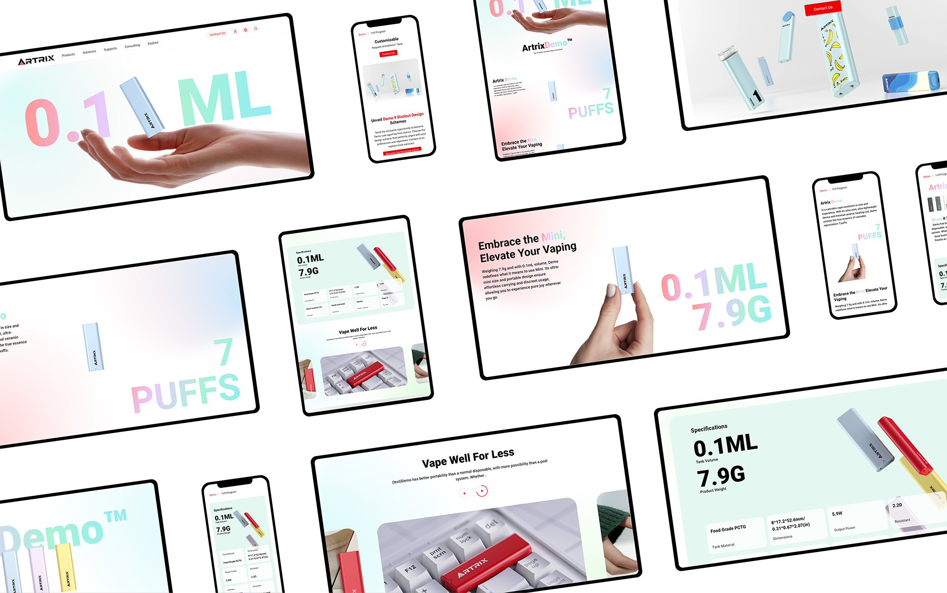Artrix Demo is a cannabis vape revolution in size andexperience. With its ultra-mini, ultra-lightweightdevice and minimal ceramic heating coil, Demounlocks the true essence of cannabisvaporization 7 puffs.