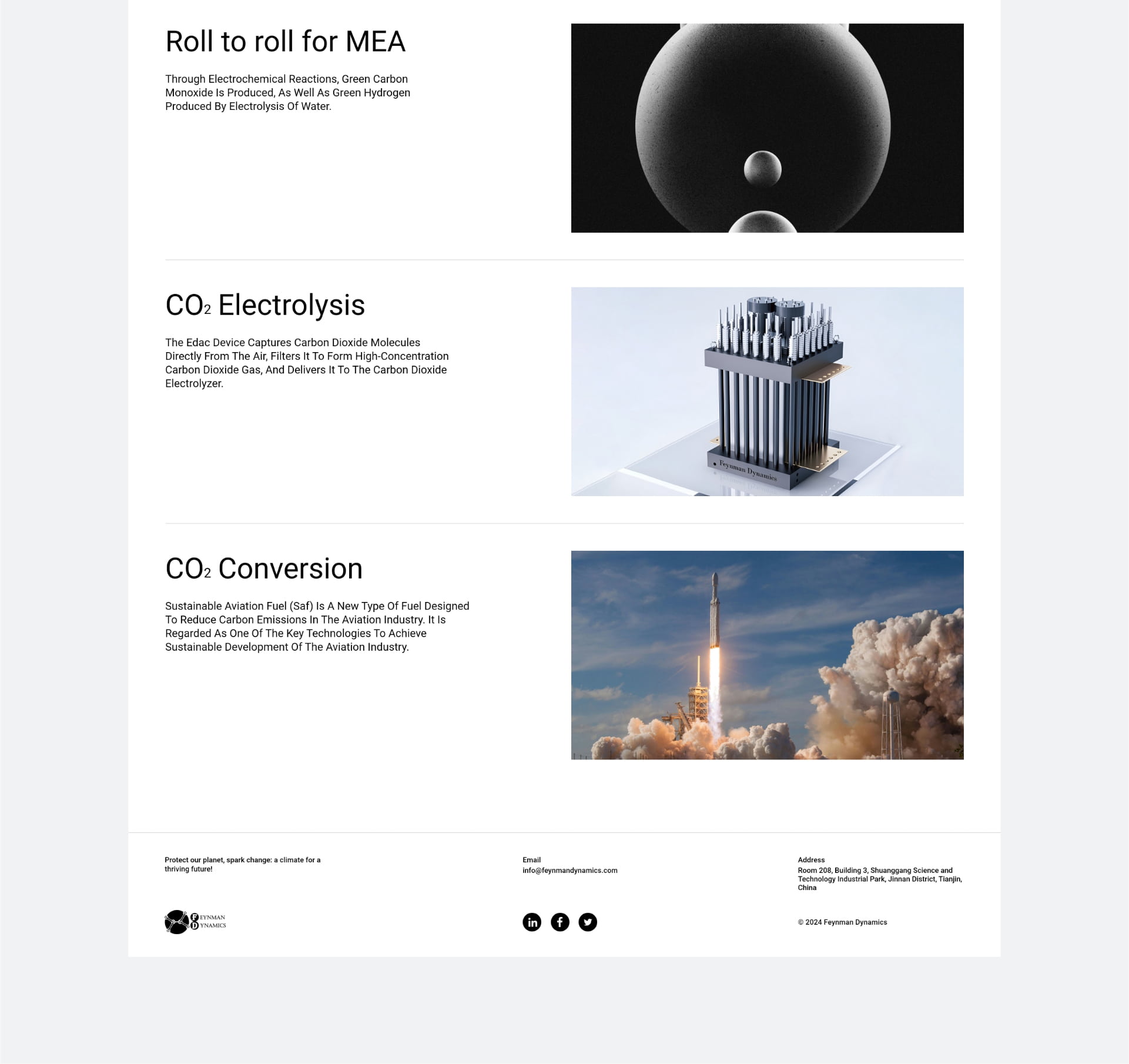 Feynman Dynamics is at the forefront of pioneering innovative electrochemical processes that convert CO2 into functional molecules, harnessing renewable energy to lay the groundwork for an expansive array of chemicals, materials, and fuels. Our mission is to re-define the role of carbon in tackling global climate challenges. By incorporating CO2 directly into our production process, we are reducing emissions across the board and reshaping the role of carbon in manufacturing. This approach is steering the industry toward a sustainable society.